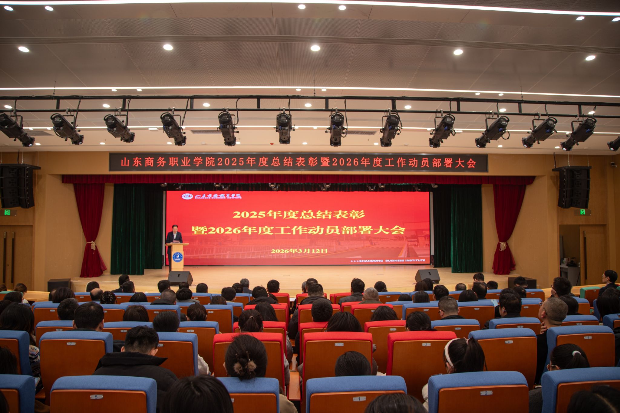 本站讯 3月12日下午,学校召开2025年度总结表彰暨2026年度工作动员部署大会,全体教职工参加会议。会上,党委书记孙云茂作题为“双高引领 创新融合 持续提升学校办学层次水平”的讲话,党委副书记、校长王发明全面总结2025年工作并部署2026年工作重点任务。会议由党委副书记张越主持。