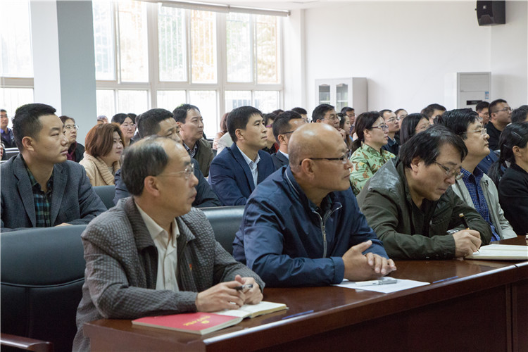 上午9时,在学校行政楼一楼学习中心,学校党委中心组全体成员和全校副科级以上干部欢聚一堂,认真观看十九大开幕会电视直播,聆听习近平总书记的报告。收看收听报告的过程中,每名同志都聚精会神,不少同志边看边记录,不时为习近平总书记的报告所打动,所鼓舞。