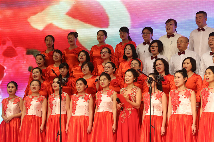 《我们走在大路上》,信息与艺术设计系党总支合唱队带来的红色经典歌曲,男女朗诵、大合唱、小领唱的多样形式让人眼前一亮;建筑工程系党总支合唱队的《爱我中华》,鲜艳的民族服装和赏心悦目的伴舞,惊艳全场;会计系党总支合唱队的《中国,中国,鲜红的太阳永不落》,我的祖国,是浩荡的黄河长江、优雅的唐诗宋词、迷人的楷书狂草,唱你千遍万遍还是喜欢;机关党总支第一合唱队演唱的《再唱山歌给党听》、《保卫黄河》,饱满的情绪、新颖的轮唱、优美的舞姿、振奋的宣言,掀起全场新的高潮,赢得阵阵掌声;机关党总支第三合唱队的《不忘初心》,强大的演唱阵容给观众留下深刻印象,两个小朋友的加盟助演,萌翻温暖现场听众;比赛在机电工程系党总支合唱队的《歌唱祖国》的豪迈歌声中落下帷幕。