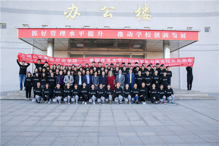 本站讯 10月23日,美国库克大学校长艾米.史都瑞女士、副校长马克.皮特里先生、美国库克大学中国总校区校长黄磊康博士一行来我校访问,并与我校2018级库克会计班的学生举行了见面会。学校领导杨新春、刘艳蔚,办公室以及会计系相关领导参加了会见活动。