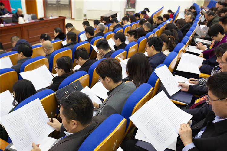 本站讯 3月9日,我校第四届教职工代表暨工会会员代表大会(简称双代会)第三次会议在图书馆二楼学术报告厅召开。全体“双代会”代表及列席代表114人参加。校领导耿建敏、杨新春、刘艳蔚、陶传蔚、张云生出席会议。会议由副院长张云生主持。