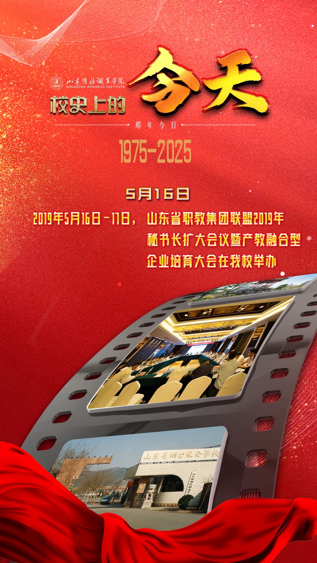 2019年5月16日—17日,山东省职教集团联盟2019年秘书长扩大会议暨产教融合型企业培育大会在我校举办。本次大会由山东省职教集团联盟主办,由我校和山东省粮食职业教育集团承办。会议由山东省职教集团联盟2019年轮值理事长、我校校长杨新春主持。教育部、烟台市教育局等政府领导以及来自全省各地的行业企业、职业院校等近90家单位百余名代表出席了本次大会。会议讨论并通过了山东省职教集团联盟成员管理办法,确定并解读了联盟2019年重点工作。
