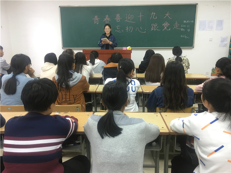 10月10日,学生处(团委)组织各班级开展“青春喜迎十九大,不忘初心跟党走”主题团课,班主任老师和团支书通过PPT展示、视频放映等多种形式回顾十八大以来祖国的建设成果,并向各位同学宣传十九大召开的重要意义。“祖国的繁荣强盛,给年轻人的发展带来更多机遇,非常期待十九大的召开。”建筑工程系李明宇同学开心说到;商务外语系在主题团课上播放了歌曲《没有共产党就没有新中国》,昂扬的旋律激发起同学们爱国爱党的强烈热情,不少同学激动表达:“一入校就写好了入党申请书,立志成为一名光荣的党员是我们的理想,要努力学习,不断磨练自己,争取早日入党。”学生处(团委)将在十九大胜利召开之际推出多项系列活动,鼓舞全校师生用激扬的青春喜迎十九大,用忘我的奉献与祖国共奋进。(党委宣传部)