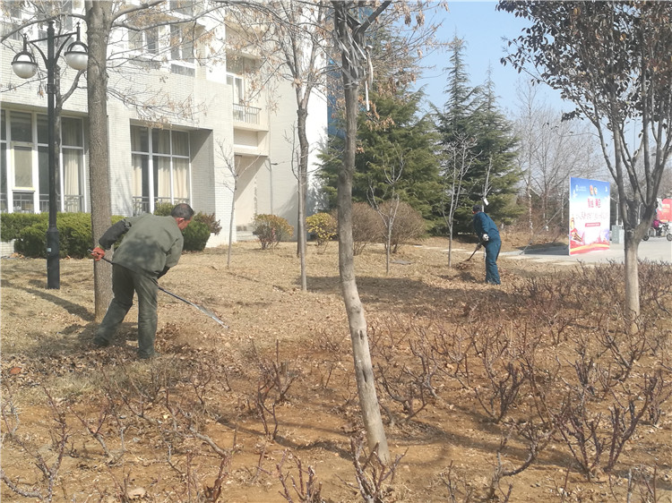 清理枯叶、剪枝塑型,松土翻整、修剪残枝,摘除树木越冬防护罩,浇灌回春水,对牡丹园、月季、茶花等树木进行追肥,促进树木生长……“一年之计在于春,春天就是劳动开始的季节,有了早春的忙碌,才有其他季节的收获”、“这里的一花一草,就像是我们的孩子,经过自己双手的打理,想着几个月后生机勃勃百花争艳的校园风光,我们也很是骄傲。”几位正在作业的绿化工人朴实的话语,一直萦绕在我们的耳边。