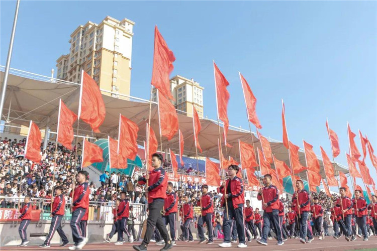 开幕式上,伴着激昂的乐曲,学校国旗班、仪仗队、花环队、鲜花队、彩旗队、各系运动员方阵依次入场。整齐的步伐、统一的着装、响亮的口号,精彩的入场式表演,精彩纷呈,各具特色。