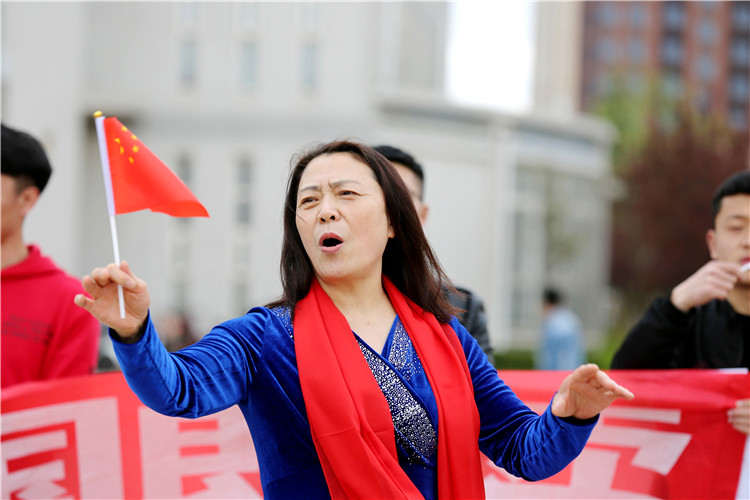 随着我校工会傅丽娜老师悠扬动听的歌声的响起,《我和我的祖国》经典的旋律开始回响在学院上空,师生纷纷驻足,从倾听、个唱到合唱,吸引了周围师生参与互动,大家一边深情地歌唱一边挥舞着手中的国旗,把心中对祖国的热爱与祝福都化作了同一首歌。