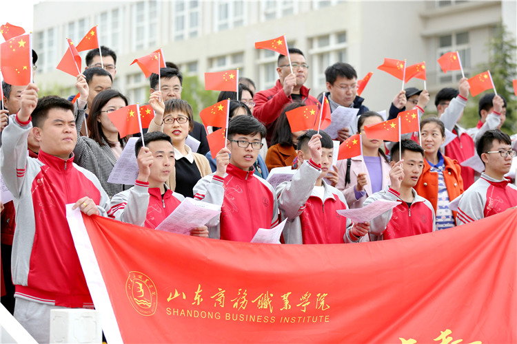4月28日下午,一百多名商务师生从校园各个地方走向中心大道国旗杆处,用别出新意的快闪一起放声歌唱《我和我的祖国》,用最热情激昂的歌声,唱出对祖国的热爱与祝福,抒发着每一位中国人心中深藏的骄傲与自豪。