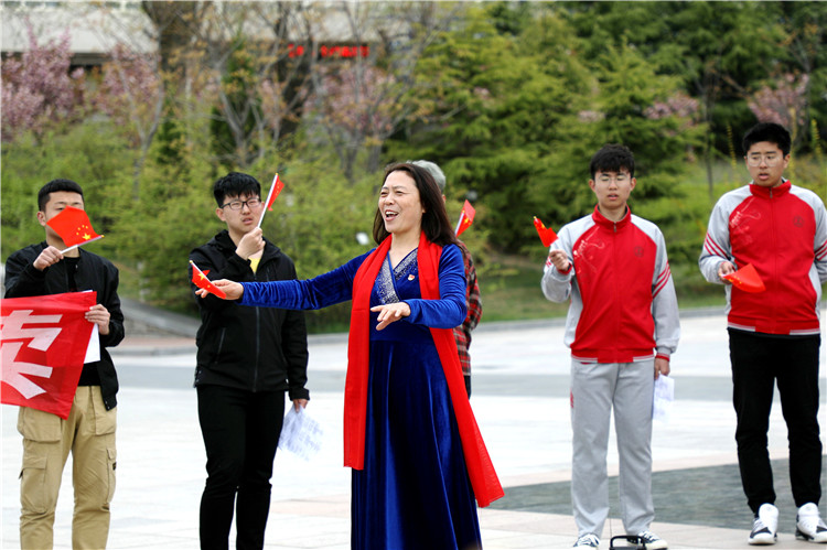 现场,我校校外人生导师、全国首届节目主持人金话筒奖获得者刘丽老师,带领师生朗诵《唱响新时代的壮丽青春之歌——献给春天的中国》《青春啊真好》,将快闪活动推向了高潮,活动在《歌唱祖国》中画上圆满的句号,现场响起了经久不息的掌声和欢呼声。