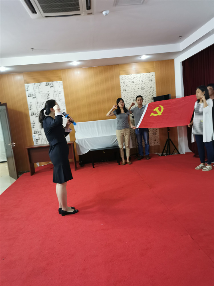 全体党员面对党旗重温入党誓词,精神振奋、语调铿锵有力,面对党旗,立下自己对党忠诚的誓言,始终牢记自己是一名光荣的共产党员,始终牢记入党时的铮铮誓言。