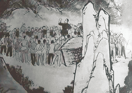 天亮后,起义仪式正式开始了。理琪庄严宣布“山东人民抗日救国军第三军”正式成立,并将“山东人民抗日救国军第三军第一大队”的军旗郑重授给大队长于得水和政委宋澄。紧接着,于得水掏出手枪,向空中连发三枪。尽管只有80多人,但三声鸣枪却激荡风云,胶东抗日的大旗自此高高飘扬。