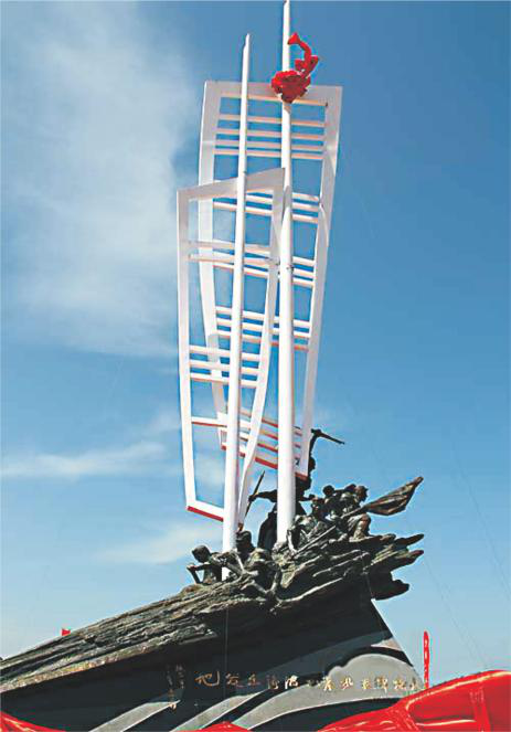 10年5月建成并揭幕的“八路军挺进东北渡海出发地”纪念碑位于北沟镇北王绪村海滩,面向东北,与对岸大连庄河渡海登陆地纪念碑遥相呼应,包括一座主题雕塑和一处纪念广场,纪念碑主体雕塑长11.6米、高15米,海拔高度19.45米,以纪念1945年八路军将士奉命渡海、决胜东北的光辉岁月。