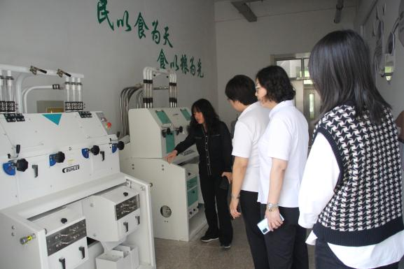 随后,黄焕丽一行参观了实验室。在参观过程中,邵珍美详细介绍了实验室的先进设备、完善的科研设施以及近年来取得的一系列重要科研成果。黄焕丽一行对学院在粮食领域的研究实力和成果表示高度赞赏,并表示将积极与学院开展科研合作,共同推动相关技术的研发和应用。