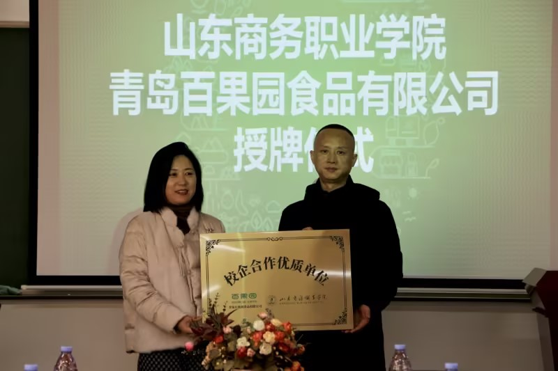本站讯 为进一步探索校企合作育人机制,共同推动产学研深度融合,12月26日,经济管理学院与青岛百果园食品有限公司举办“深化协同合作,共筑共赢未来”产教融合交流会暨创新创业基地授牌仪式。