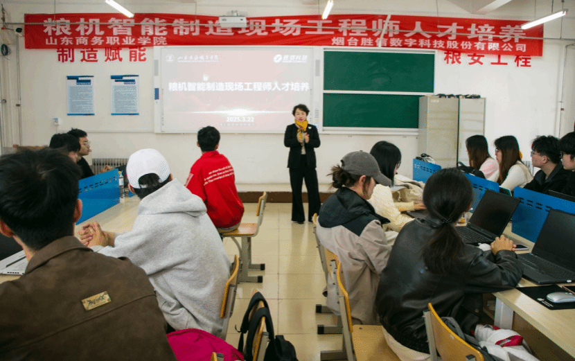 本站讯 3月22日,智能制造学院与烟台胜信数字科技股份有限公司(以下简称“胜信数字科技”)联合共建的“粮机智能制造现场工程师人才培养班”开班仪式在学院实训楼举行,智能制造学院院长魏彦波、胜信数字科技总经理田桂兰及校企双方代表共同参加,标志着双方在共育智能制造人才领域迈出坚实一步。